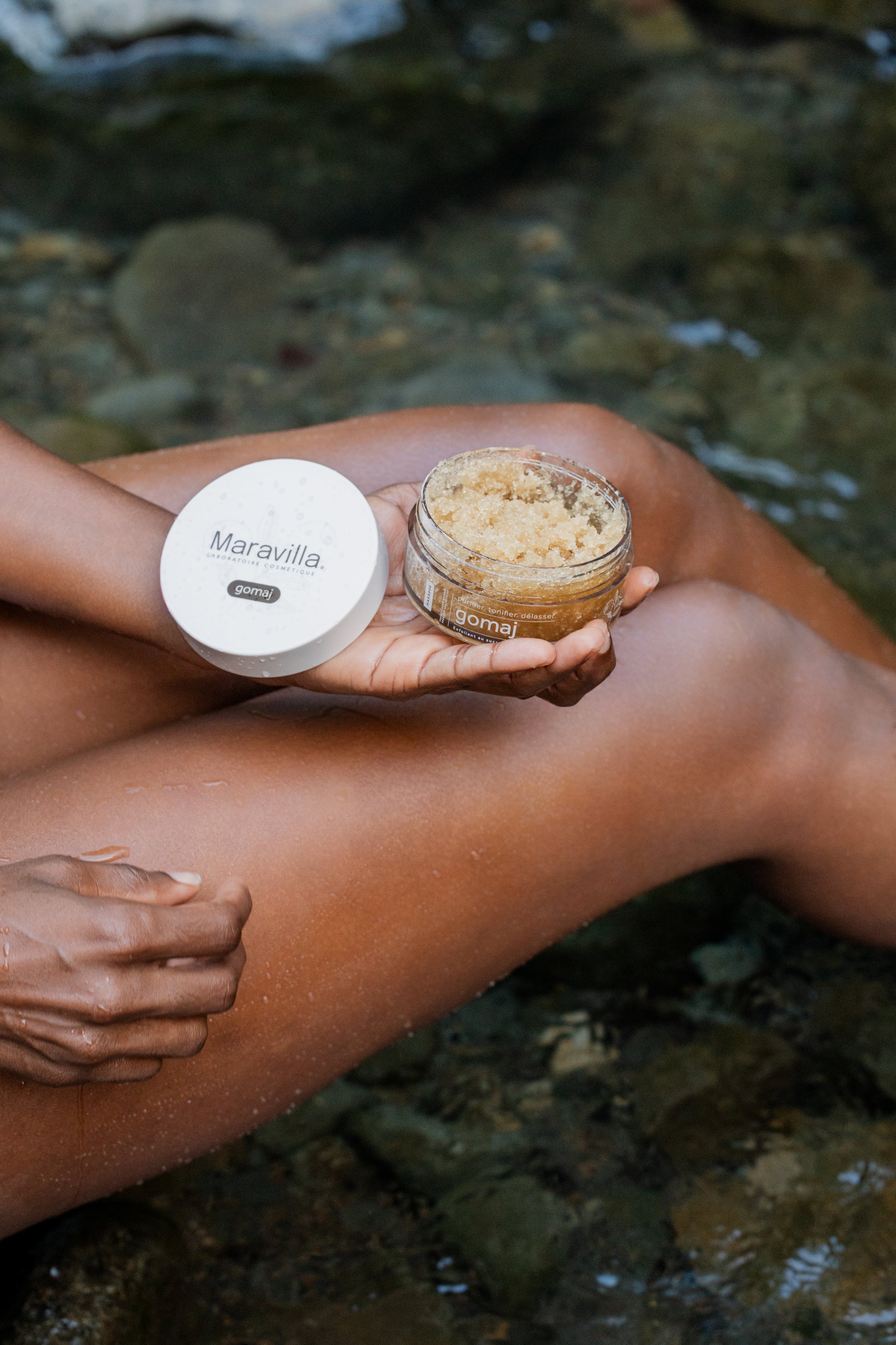 Éveillez votre peau avec le GOMAJ, un exfoliant pour le corps qui capture la douceur et la vitalité des Caraïbes. Ce gommage est formulé avec de l'huile de calophylle et de la canne à sucre, une des richesses naturelles de la Guadeloupe. Il purifie, exfolie en douceur et laisse votre peau incroyablement douce et parfumée. Mais ce n’est pas tout, son odeur mentholé donnera un effet cryothérapie, rafraichissant vos jambes pendant 30min, idéal pour les problèmes de jambes lourdes ou après le sport.