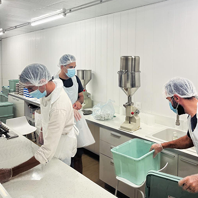 Une fois les produits terminés, ils sont mis en pot et prêts à être utilisés.